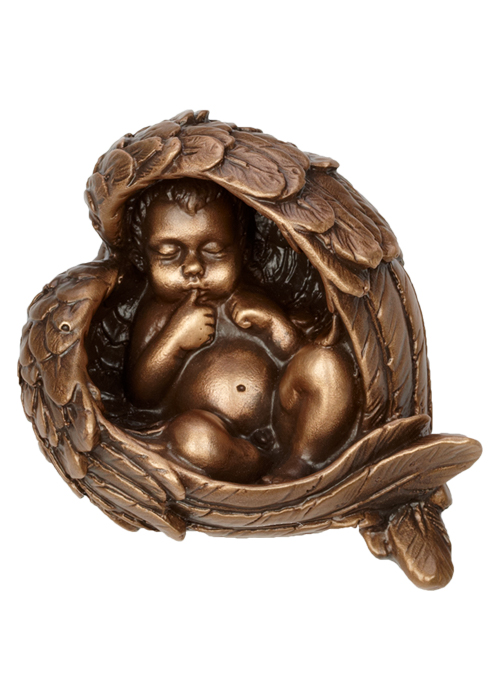 Die Darstellung eines Kindes in Bett der Engelflügel aus Bronze